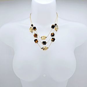 Abalone Chip Station Necklace Faux Tortoise MOP Multi Layer Statement Jewelry
