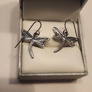 Abalone Dragonfly Earrings Silver Tone Dangle Drop Womens Inventory Location Box 18