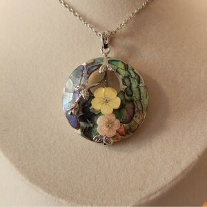 Beautiful coloring on this abalone beauty! This necklace has an 18” stainless steel chain, so it won’t turn you green!