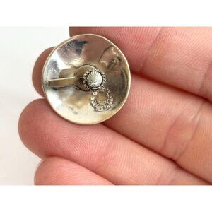 Beautiful sterling silver vintage southwest style stud earrings. The earrings have a beautiful pattern that looks like a gazelle to me. The earrings are inlaid with mother of pearl / abalone. Colors are rich with greens, purples and blues. Screw back enclosure. Marked as sterling and tested positive as such via chemical testing. Lightweight and comfortable for all day wear. Made in Mexico. Gorgeous pair. Although I hace pierced ears, I find screw backs to be surprisingly comfortable. I have over 12 holes per ear and I still sometimes wear this style without a problem. Just in case you're worried about comfort. Lightweight.