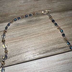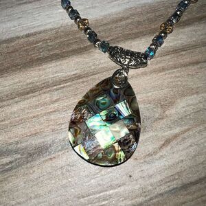 Abalone Inlayed Pendant Crystal Bead Necklace Silver Plated Drop Statement