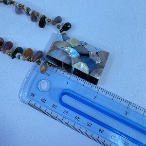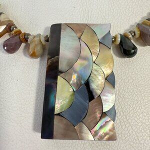 Abalone MOP Pendant Necklace & Faceted Stone Earring 2-Piece Set