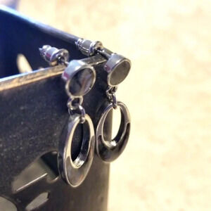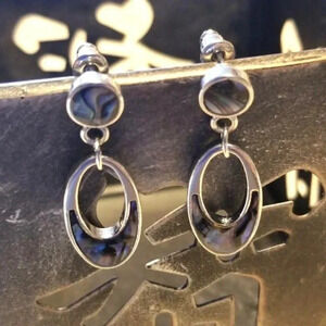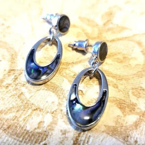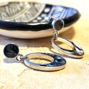 Silver Rhodium Plated Natural Paua Shell Open Oval Drop Modernist Post Dangle Earrings