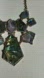 • Antiqued brass-tone settings with crystal rhinestone borders