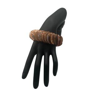 Handmade stretch bracelet crafted with circular iridescent disc-shaped shell beads in brown and gold tones. Elastic design for easy wear and a secure fit.