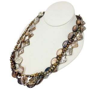 Abalone Shell Fresh Water Pearl Layered Necklace 23" Variegated Beaded Nautical