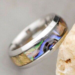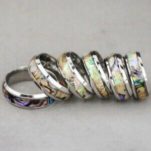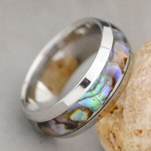 Abalone Shell Inlay Stainless Steel Ring Size 7