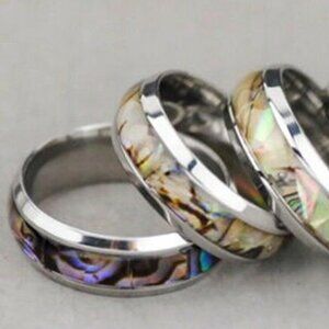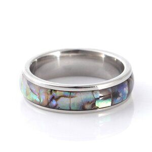 Abalone Shell Inlay Stainless Steel Ring Size 8
