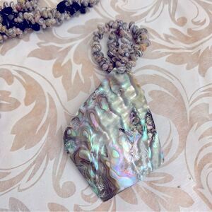 Abalone Shell Pendant Necklace Shells - Seed Beads - Black Stone Also Bracelet
