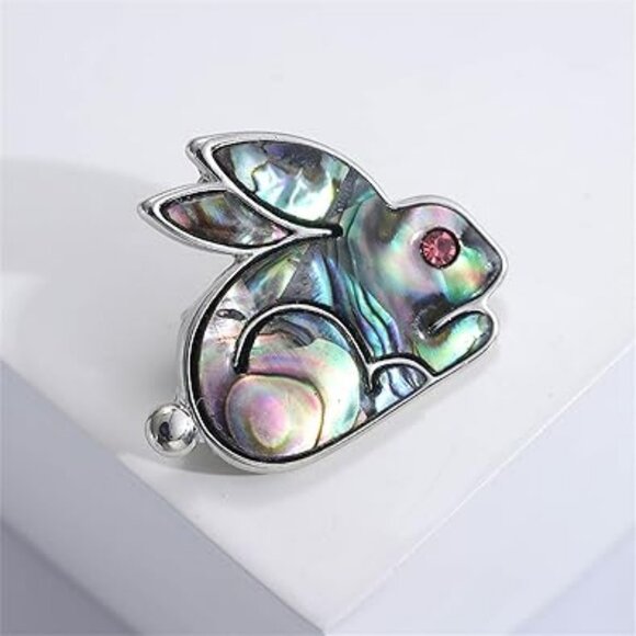 Abalone Shell Rabbit Lapel Pin Brooch Nice !!
