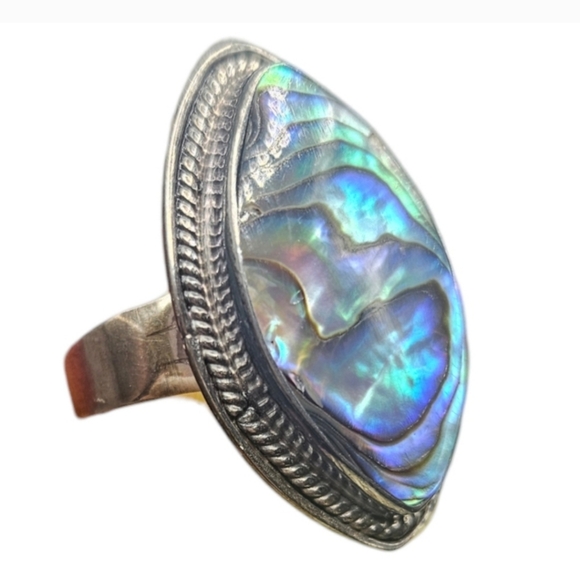 Abalone Shell Ring in Sterling Silver Size 6.5 *not stamped O3 519