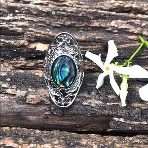 Stunning ring Abalone Shell is set in a beautiful detailed ornate ring! Setting is1.25” Top to bottom
