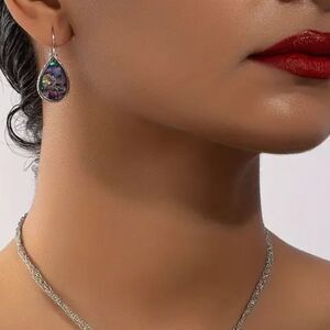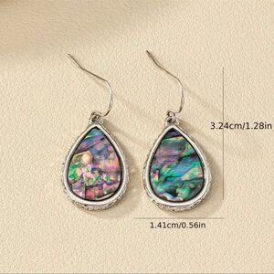 Abalone Shell Silver Drop Hook Earrings Boho Jewelry