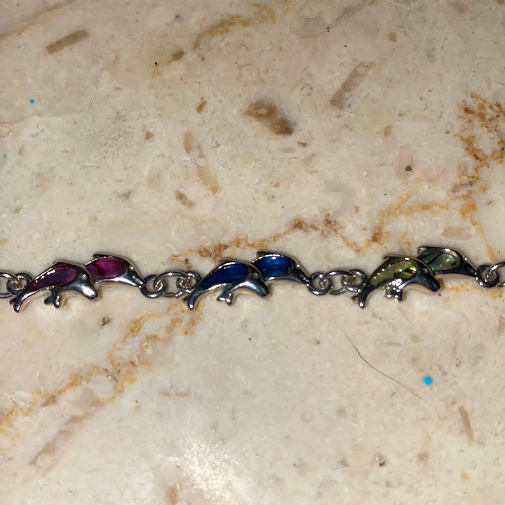 Abalone Shell Silvertone Dolphin Bracelet