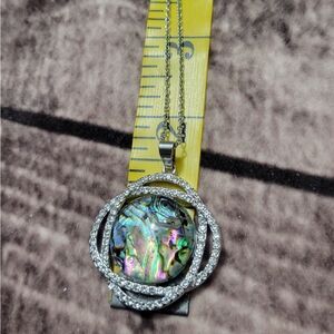 Abalone Shell and White Austrian Crystal Curvy Round Pendant Necklace