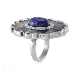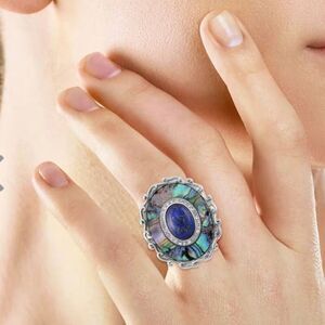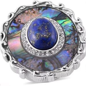 Abalone Shell Lapis Lazuli 3.00 ctw and Crystal Statement Ring Size 6 New