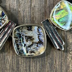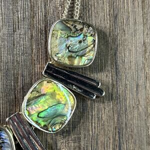 Abalone Slide Bead Necklace Gold Tone Boho 16” With 3” Extender Double Chain