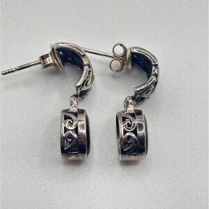 These abalone and sterling silver earrings offer a refined aesthetic, showcasing intricate design details. The blend of materials ensures a sophisticated look, suitable for both formal and casual settings. The abalone provides a subtle iridescent touch, enhancing the overall elegance of these earrings.