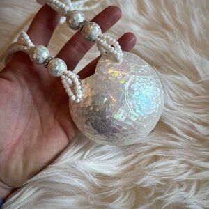 Abalone and Stone Shell beaded necklace white Elegant iridescent