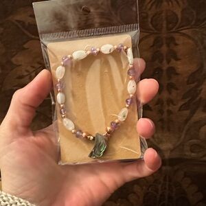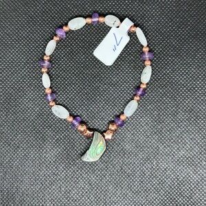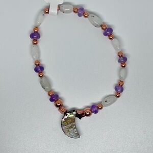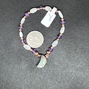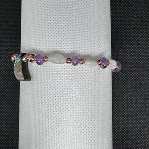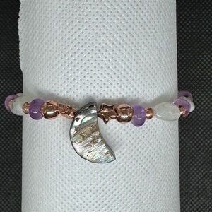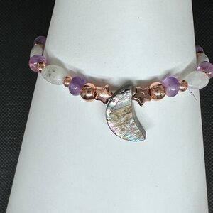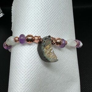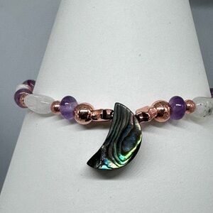 Abalone moon Amethyst rainbow moon stone bracelet stretchy handmade