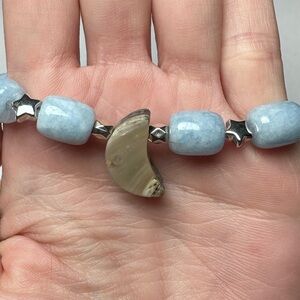 Abalone moon with blue dyed quartz bracelet stretchy handmade stars