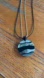 This stunning necklace features a multicolor pendant that looks like Mother of Pearl or Abalone with a blend of gold, black, and brown hues. Perfect for adding a touch of elegance to any outfit. I only had the pendant so I put two chains with it. One is a black cord and the other is marked 925. The pendant is 2 inches across and is set in a solid black back. The cord chain is about 20 inches and the Sterling chain is about 18 inches.