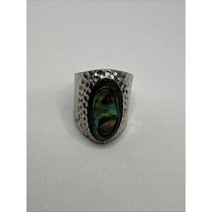Abalone silver hammered ring size 5 signed 925 CFJ Thai