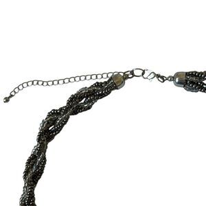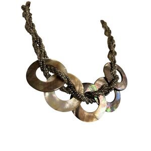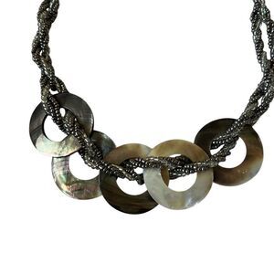 Abalone Shell Disk Braided Silver and Clear Beaded Adjustable Length Necklace Y2K Statement