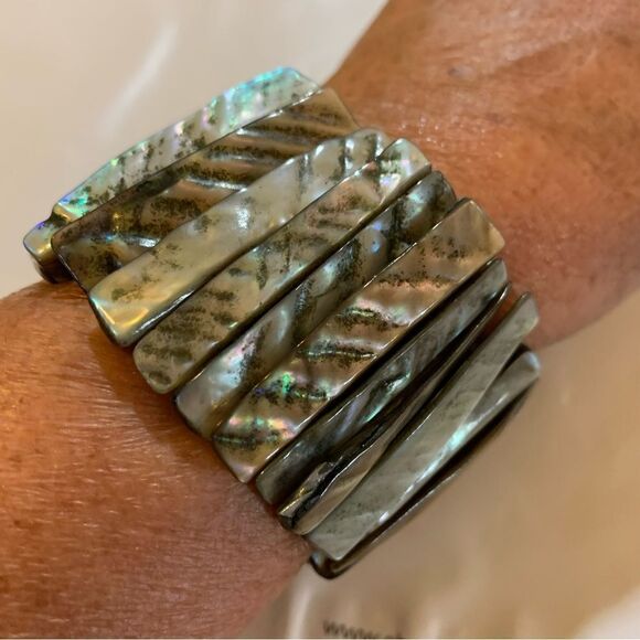 Abalone Shell Bracelet Wide 1.75” OSFA Vintage Boho Gypsy Gorgeous