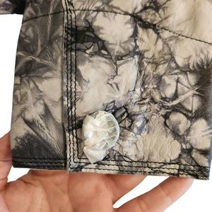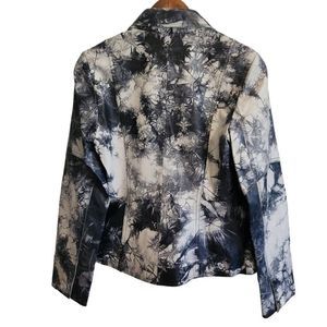 Abandon Italian Leather Jacket Women's Medium Moto Blazer Button Front Navy Blue