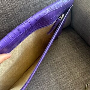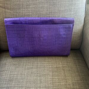 Stylish purple clutch with crocodile embossing. Perfect for a night out.