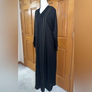 Abaya Black Gold Size 56 (2X-3X) Long Sleeve Maxi Lightweight Islamic Dress NEW