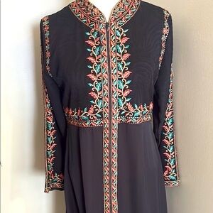 This elegant long sleeve dress features exquisite floral embroidery, perfect for adding a touch of sophistication to your wardrobe. Ideal for any occasion.if fits size medium! Worn once and it’s in agreat condition