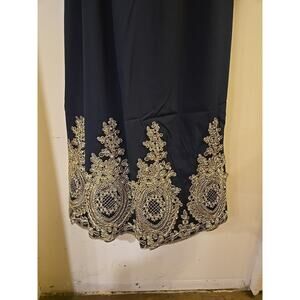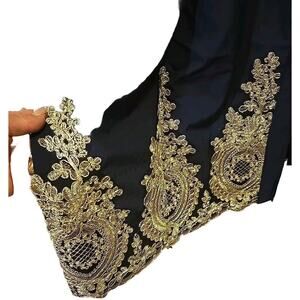Elevate your style with this stunning navy blue dress by Abetteric. The dress features intricate gold lace embroidery that adds a touch of elegance to your wardrobe. The open design of the dress gives it a unique and stylish look that is perfect for any occasion. The dress comes with a sash that adds an extra touch of sophistication to the overall look. The dress is perfect for women who want to make a statement and stand out from the crowd. The dress is available in the Clothing, Shoes & Accessories category and is perfect for those who want to make a statement with their fashion sense.