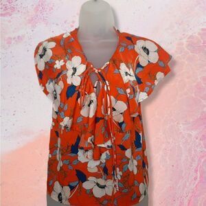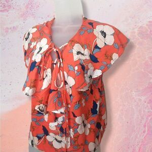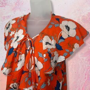 Abbeline Floral Ruffle Blouse in Red Orange sz M