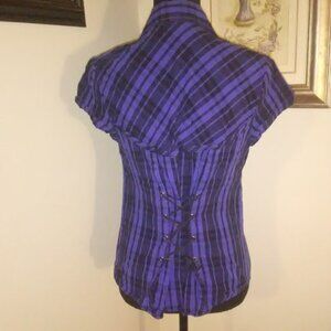 Abbey Dawn by Avril Lavigne button up plaid shirt 2 front pockets and string laced up back for adjusting size