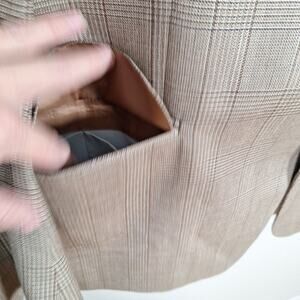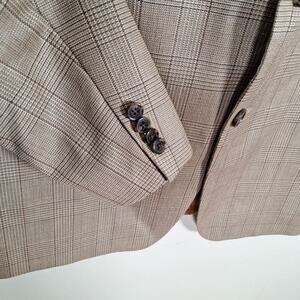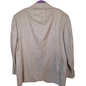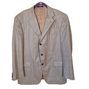 Abboud Beige Neutral Plaid 3 Button Wool Slik Plaid Sport Jacket Blazer Men 44R
