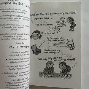 The star of Dory Fantasmagory is heading to school. Her older siblings, Luke and Violet, warn her to leave her imaginary friend, Mary, at home—or better yet, leave her whole imagination at home! Dory is determined to behave like a “regular old girl who never gets in trouble,” but on her very first day she meets a new friend, a girl whose imagination and style are just about as wild as her own. Now she just has to convince her siblings that she’s not making it all up!