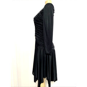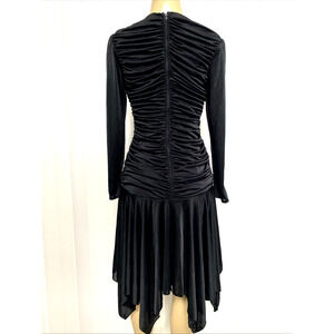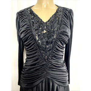 Abby Kent Dress Black Ruched Long Sleeve Bead Sequin Midi 80' V Neck S
