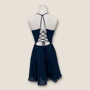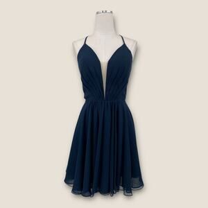 Abby Paris Backless Chiffon Semi-formal Dress in Navy 984911