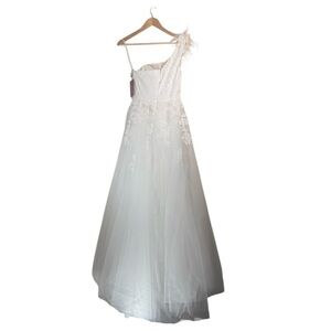 Abby Paris Longs by Lucci Lu Lace Gown with Tulle Overskirt in Ivory/White NWT