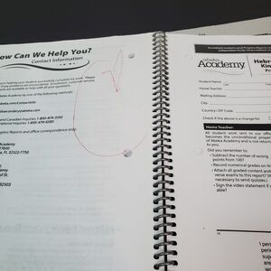 MISSING First progress report tear out sheets (lessons 1-85) for both home educator and Abeka. Some scattered writing and scribbling near back. General wear to book, staple in front cover, some food or other discoloration on title page. Some small creases to cover.