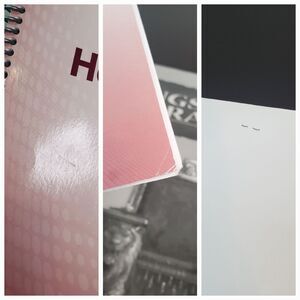 Indents on cover from notes/doodling. A couple grease stains(?) on front cover. Some creasing to spine and wear to surface/spine. Pages appear free of writing.