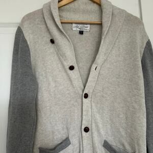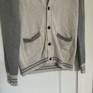 Abel Brown Varsity Shawl-Collar Cardigan Sweater Mens Small Gray