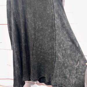 • dark gray distressed wash | long sleeved | cold shoulder | sleeves and center of dress are a waffle knit material | side contrast fabric is a ribbed knit