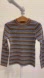 Stylish ribbed sweater with blue, brown, and black stripes. Perfect for a cozy look.