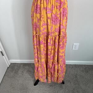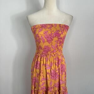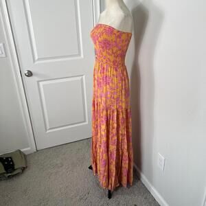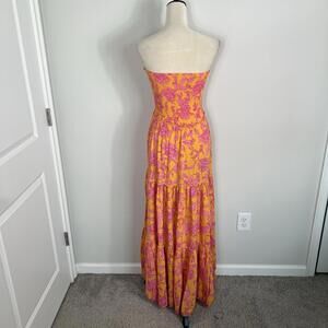 Abel The Label Anthropologie Strapless Tiered Maxi Dress Smocked Orange Floral S