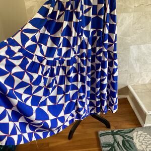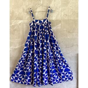 Abel The Label Anthropologie Tier Maxi Dress Small Blue Geometric Boho Oversized