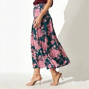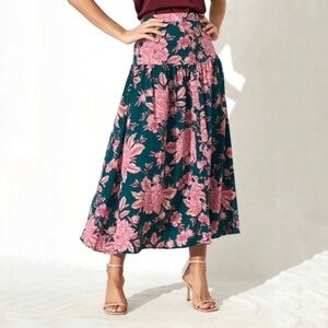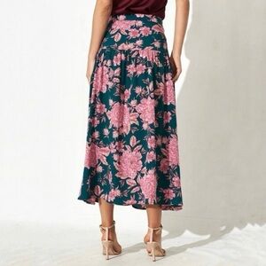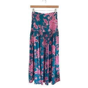 Abel The Label Bonnie Floral Boho Yoke Maxi Skirt in Teal / Pink, Size Large.