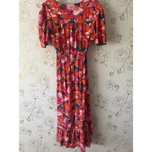 Abel The Label Dress Womens Size Small Maxi Pink Floral Flowy Watercolor 027